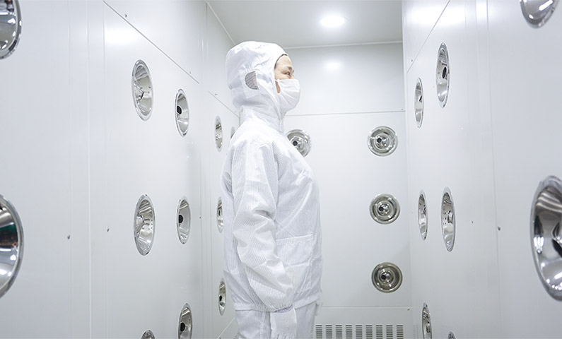 高效过滤的洁净强风吹除人员衣服表面附着的尘埃颗粒