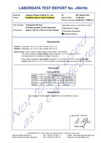 东亚产品系列均通过了国家危险货物包装检测重点实验室抽样认证,具备办理出入境包装性能单的资质,防静电、导电集装袋(内袋与外袋)均获得国际电工委员会认证,符合IEC61340-4-4标准。